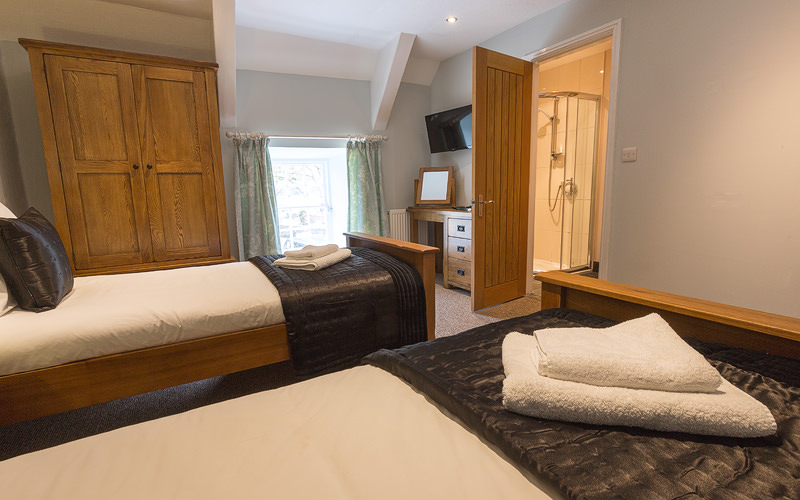 A twin room with en-suite shower room, hair dryer, free Wi-Fi access, lcd tv with freeview, toiletries and tea/coffee making facilities.
