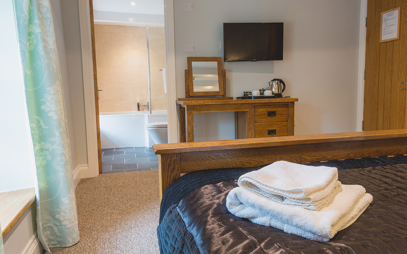 A king size double room with en-suite bath/shower room, hair dryer, free Wi-Fi access, lcd tv with freeview, toiletries and tea/coffee making facilities.